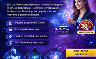 Looking to build a successful career in Artificial Intelligence? eMexo Technologies offers industry-oriented AI training in Electronic City, Bangalore, designed for freshers and working professionals. The program covers core concepts such as Artificial Intelligence, Machine Learning, Python, Deep Learning, NLP, Computer Vision, and Data Analytics through hands-on sessions and real-time projects. Learners gain practical exposure through live assignments and an internship that helps bridge the gap between theory and real-world application. Training is delivered by experienced industry experts, ensuring job-ready skills. With flexible learning modes, professional AI certification, and dedicated placement assistance, eMexo Technologies helps learners confidently step into high-demand...