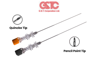 A spinal needle is a type of hollow needle that is thin and sterile and is used to access the lower spine for procedures such as spinal anesthesia and spinal tap or lumbar puncture. The needle is designed to have a sharp end and is often colored and transparent to help doctors observe spinal fluid movement. The needle is available in two different forms: cutting or Quincke and pencil point or Whitacre/Sprotte, which help minimize tissue damage and headache post-procedure.