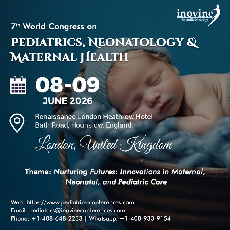 Join us for the 7th World Congress on Pediatrics, Neonatology & Maternal Health, taking place on June 08-09, 2026, in London, UK. Centered around the theme “Nurturing Futures: Innovations in Maternal, Neonatal, and Pediatric Care,” this prestigious global congress will bring together leading experts, researchers, clinicians, and industry professionals to explore cutting-edge advancements in child and maternal health.   The event will feature keynote sessions, interactive workshops, poster presentations, and exhibitions covering key topics such as pediatric cardiology, neonatal research, maternal-fetal medicine, AI in healthcare, and global health initiatives. Don’t miss this opportunity to gain CPD credits, connect with international experts, and engage in high-level scientific dialogue aimed at improving healthcare outcomes for mothers and children worldwide.   Regards, Allen Julian