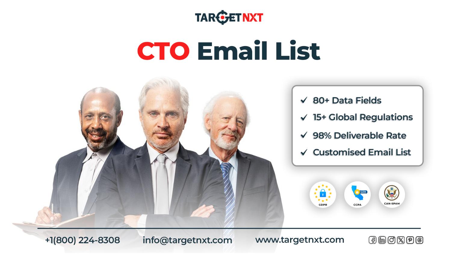 Is your business focusing on technological solutions that align with the requirements of CTOs worldwide? If so, then you need to get in touch with Chief Technology Officers for marketing & sales. How to do so? By accessing targeted “CTO Email List” from TargetNXT developed and built by team experts helping you connect with “authorized CTO” from across the globe.