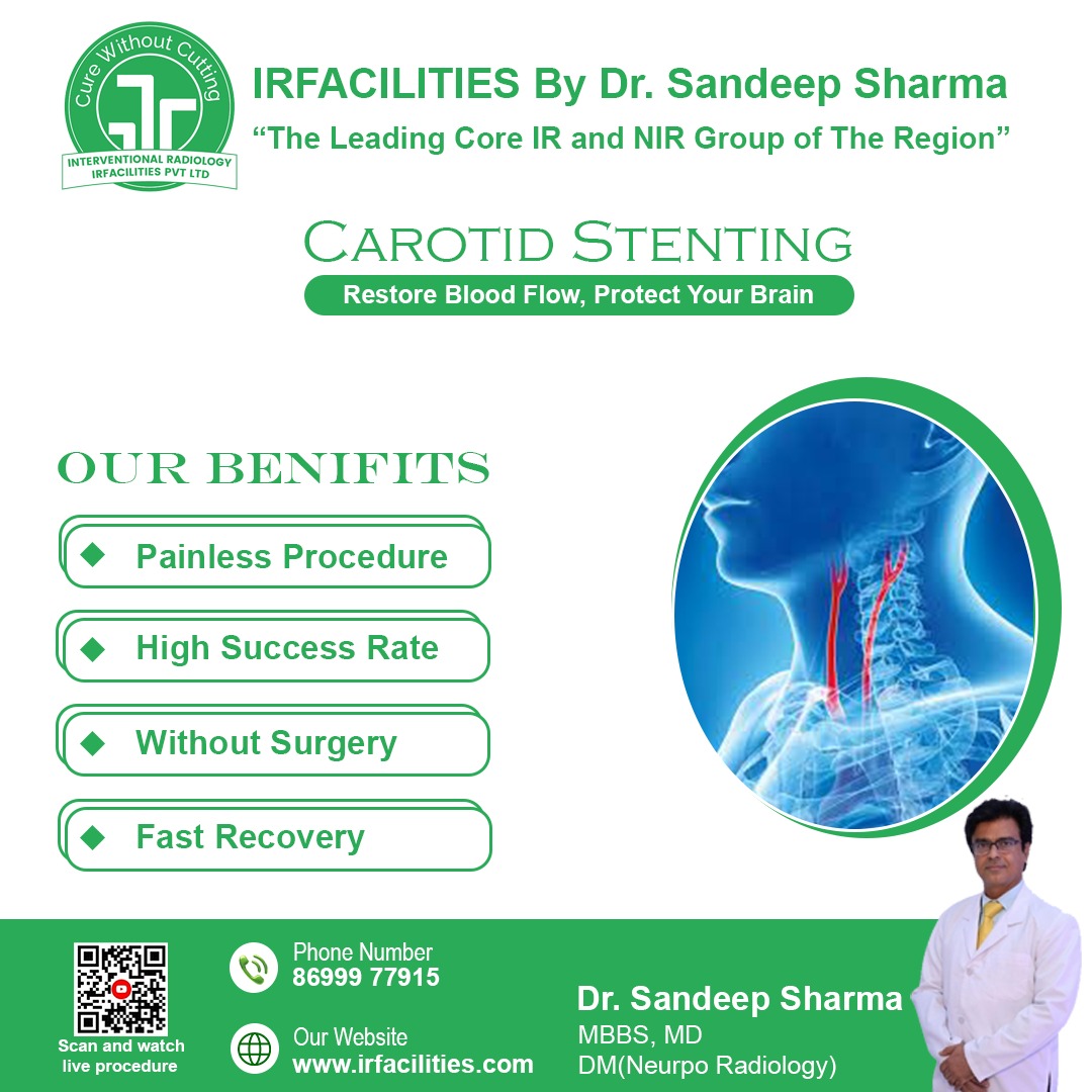 Carotid artery stenting is an advanced, minimally invasive treatment designed to open narrowed arteries and lower the risk of stroke. At IR Facilities, we use precise imaging techniques to improve blood flow, enhance safety, and support faster recovery with effective results.