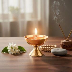 The Akhand Jyot Diya from Divine Tales is available at a budget-friendly Akhand Jyot price, making divine light accessible to all. Handcrafted from durable brass, it’s ideal for continuous burning during aartis, festivals, or meditation, bringing warmth, purity, and devotion into your spiritual practice.