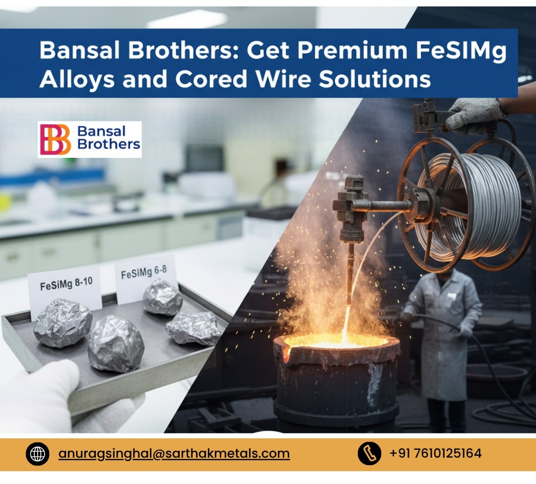 Bansal Brothers is a trusted name in the metallurgical industry, offering high-quality FeSiMg alloys (FeSiMg 8-10, FeSiMg 6-8), Inoculants, and cored wire solutions for foundries and steel plants. With a focus on precision, reliability, and consistent performance, we help manufacturers achieve cleaner castings, reduce defects, and optimize production efficiency. Partner with Bansal Brothers for superior alloy solutions tailored to your needs.