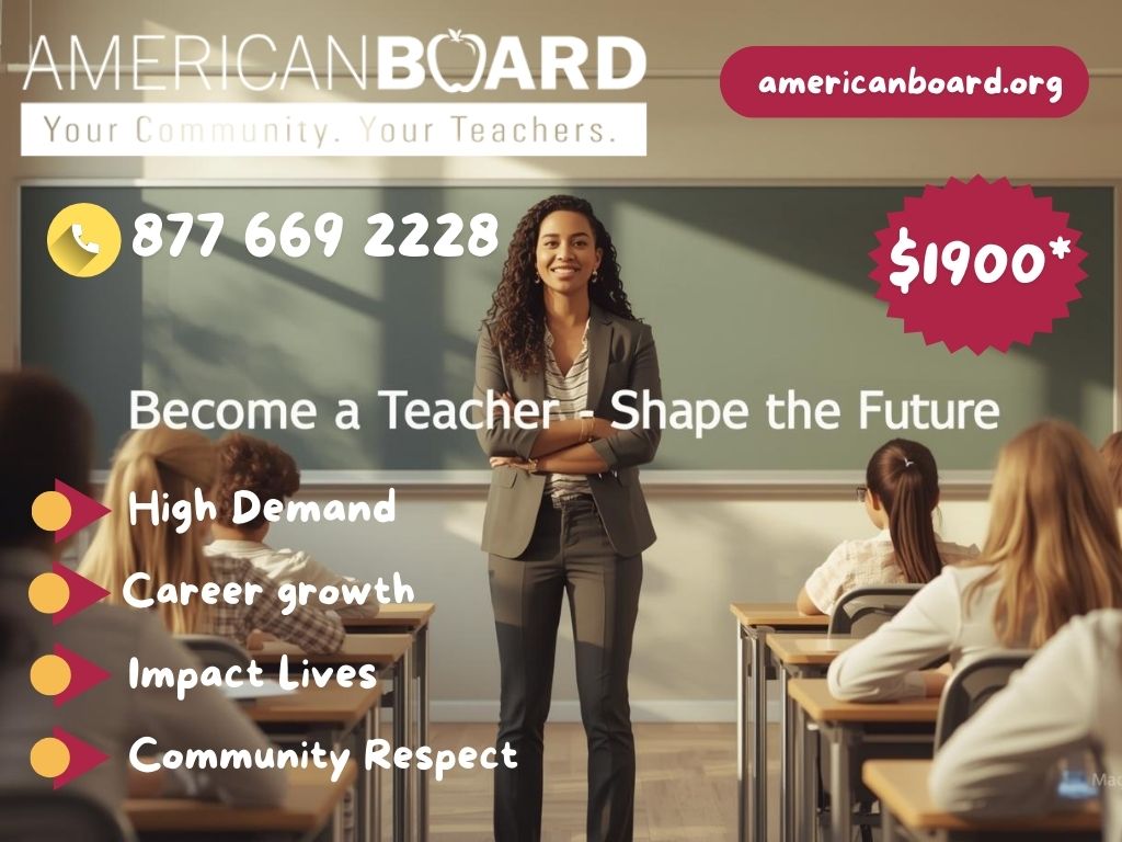 Become a teacher with American Board, a flexible and affordable alternative teacher certification program designed for career changers and aspiring educators across the United States. American Board (ABCTE) helps you earn a respected teaching certification without going back to college or completing unnecessary coursework. The program is 100% online, self-paced, and aligned with state requirements, allowing you to prepare for certification exams on your own schedule. Whether you want to teach elementary, secondary, or subject-specific courses, American Board provides structured study materials, expert support, and a clear path to the classroom. Thousands of teachers have used American Board certification to launch or advance their teaching careers in public, private, charter, and international schools. If you’re looking for a faster, cost-effective way to become a teacher and make a real impact in education, American Board offers a proven and trusted solution.