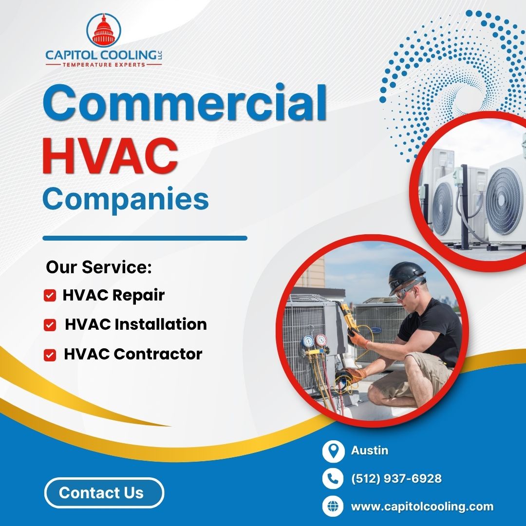 Unreliable HVAC systems can hurt comfort and efficiency. Capitol Cooling ranks among the top commercial HVAC companies in Austin, delivering expert installation, repair, and maintenance built for lasting performance. Keep your business running smoothly—get a quote today.
