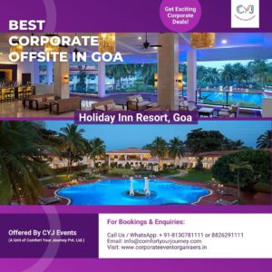 When it comes to Corporate Offsite Venues in Goa, CYJ Events (a unit of Comfort Your Journey Pvt. Ltd.) ensures you get the best locations for your team. Goa is home to several venues that provide the perfect environment for team building and relaxation. CYJ offers corporate venues like Resort Rio Goa and Resort Rio, which provide comfortable stays, excellent dining, and top-tier facilities. Corporate offsites play a vital role in bringing teams together, helping them understand each other’s strengths and weaknesses. These offsites also promote communication and collaboration among team members. CYJ Events ensures that you get the perfect venue to meet all your corporate needs. From adrenaline-pumping activities to peaceful bonfire sessions, CYJ Events will make your corporate offsite tour memorable. Enjoy the serene beauty of Goa while your team participates in fun activities and unwinds from the hectic work life. Contact us at 8130781111 or 8826291111 to explore top Corporate Offsite Venues in Goa today!
