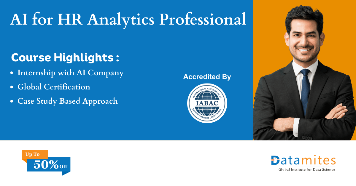 The DataMites AI for HR & People Analytics course in Gurgaon delivers practical, IABAC-certified training focused on AI-driven hiring, employee performance evaluation, attrition modeling, pay analysis, and workforce optimization.