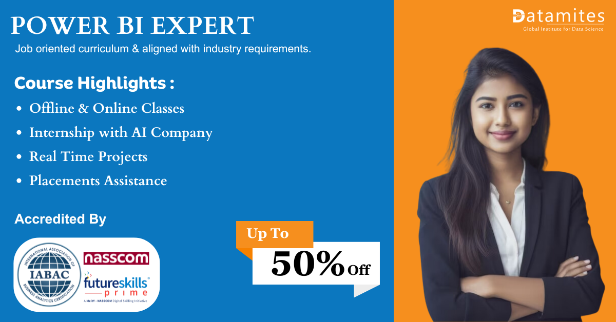DataMites provides Power BI certification in dhanbadthrough a well-structured three-month program designed with a strong focus on practical learning. The course includes flexible online training, internship opportunities, and project-based assignments to ensure hands-on experience. Participants gain globally recognized certification along with industry-relevant, career-focused skills. This program also serves as a reliable platform that learners can revisit to continue building expertise in data analysis and reporting tools.