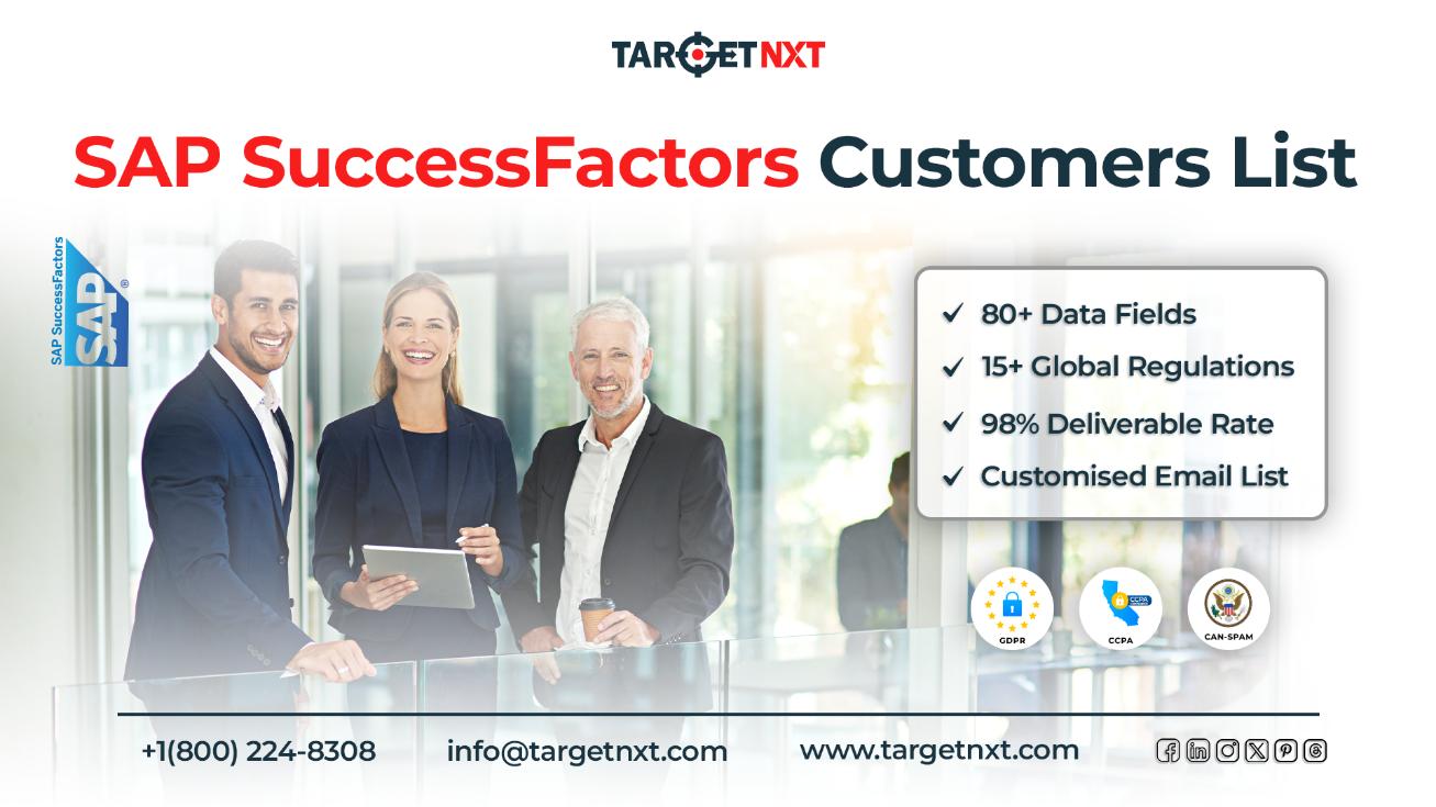 TargetNXT’s SAP SuccessFactors Customers List helps you reach HR professionals using SAP SuccessFactors for talent management and workforce optimization. Whether you’re offering HR software, employee training, or organizational consulting, our email list helps you get your message in front of decision-makers in human resources.