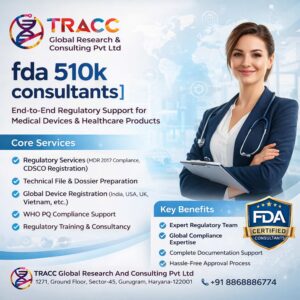 FDA 510k consultants support medical device manufacturers in obtaining FDA clearance by managing the entire 510(k) submission process with precision and expertise. They develop effective regulatory strategies tailored to each product, ensuring compliance with all FDA requirements and guidelines. Their services include detailed documentation preparation, substantial equivalence analysis, risk management, and performance testing support. These consultants also conduct thorough compliance checks to minimize errors and reduce the chances of rejection or delays. In addition, FDA 510k consultants handle direct communication with the FDA, respond to queries, and provide guidance during review cycles. Their experience helps companies navigate complex regulatory pathways efficiently, saving time and resources. By ensuring accuracy, completeness, and adherence to standards, they improve approval success rates and accelerate time-to-market. This allows medical device companies to launch products confidently in competitive healthcare markets while maintaining full regulatory compliance and quality assurance. Visit our website for more Information:- Website: https://traccglobal.com/fda-510k-consulting-medical-devices/ Call us:- +918868886774 Email: info@traccglobal.com Address:- TRACC Global Research And Consulting Pvt Ltd, 1271, Ground Floor, Sector-45, Gurugram, Haryana-122001.