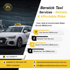 We are a reputable taxi service provider of best wheelchair taxi service near me, who provides safe, comfortable and accessible transportation to its passengers at Berwick Taxi Services. We have specially fitted vehicles to make our travels easy and convenient with trained drivers who take care and comfort seriously. It could be a checkup, commute to work, or a trip, we are there to assist. We also have a good melbourne airport taxi service, which guarantees punctual drops and collections to the airport, making airport travel hassle-free. Our services are punctual and customer-centric, which makes any journey easy and comfortable.