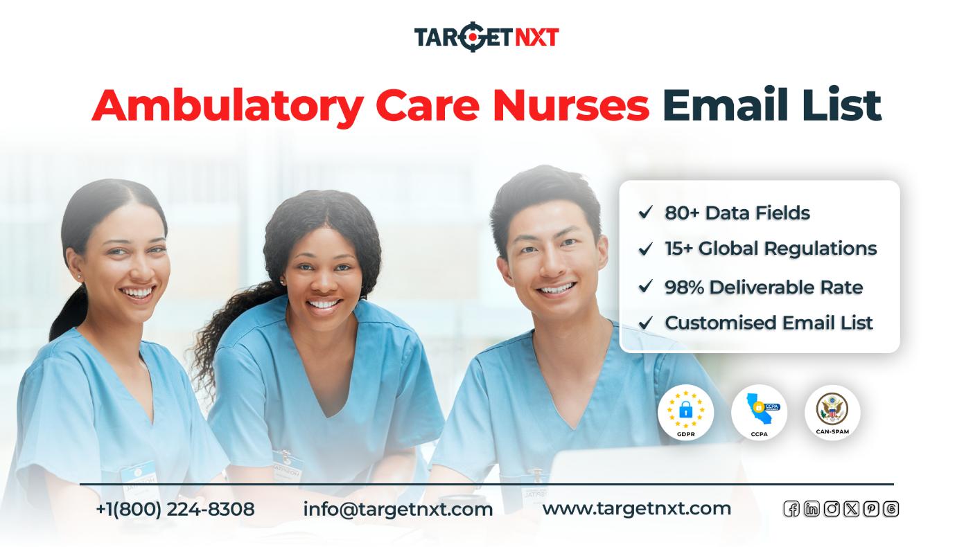 A marketing-driven resource is all you need to boost your campaigns to the next level. But you might be wondering where to find it? That’s available with us i.e., TargetNXT’s Ambulatory Care Nurses Email List ingraved with only direct and multi-channel use contact details of ambulatory care nurses for higher conversions and skyrocketing ROI.