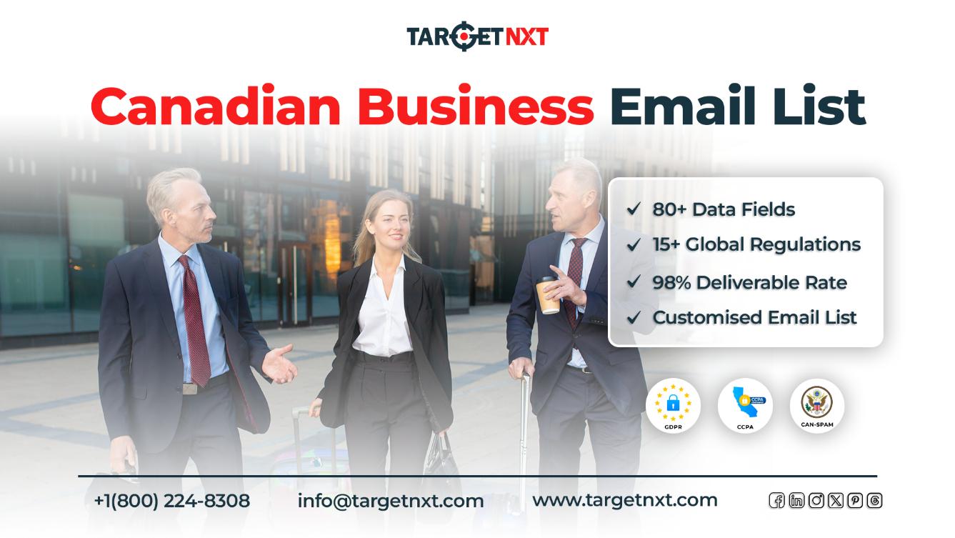 Your B2B business growth & development in the Canadian market depends on TargetNXT. So, without thinking much, opt for our Canadian Business Email List to step up your marketing game to the next level, and gain significant outcomes by reaching out directly to “ideal prospects” whos professional needs can be satisfied with your business offerings.