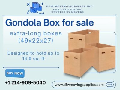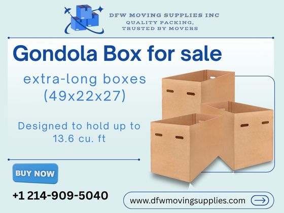 Gondola Box – Extra Long 49″ Box Move large artwork, computers and all your office stuff with ease. Narrow width fits down hallways without blocking passage. Holds 13.6 cu. ft. Lids are sold separately. Jumbo Speed Pack Box for moving to the entire office.
