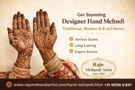 Raju Mehandi Artist is a well-known mehandi artist based in Delhi. Mehandi, also called henna, is a special kind of temporary tattoo made from the leaves of the henna plant. Raju has been creating beautiful designs for many years, making him a favorite choice for many people in the city. He uses natural henna, which leaves a dark, rich color on the skin, and his designs can range from simple patterns to elaborate artwork. Raju offers his services for various occasions, such as weddings, festivals, and parties. Many brides choose Raju because he can create stunning and unique designs that fit their style. He works closely with his clients to understand what they want, whether it’s traditional patterns or modern styles. Raju’s talent and creativity ensure that everyone who gets mehandi from him leaves with a smile and a beautiful design on their hands. In addition to his artistry, Raju is known for his friendly personality and excellent customer service. He makes every client feel comfortable and happy during the mehandi application process. Many people recommend him to friends and family because they appreciate his skill and the fun experience he provides. If you’re looking for a talented mehandi artist in Delhi, Raju Mehandi Artist is a great choice to consider for your special event!