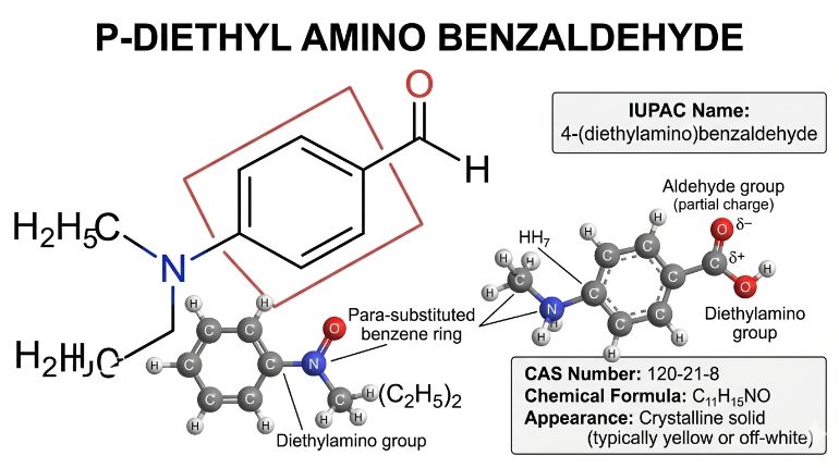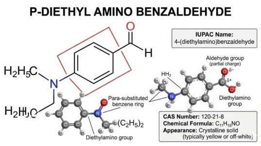 Sarna Chemicals is a trusted supplier of high-purity P-Diethyl Amino Benzaldehyde in India, catering to the growing needs of pharmaceutical, chemical, and research industries. This important aromatic compound is widely used as a key intermediate in the synthesis of dyes, specialty chemicals, and laboratory reagents. Known for its reliable chemical properties and versatility, p-Diethyl Amino Benzaldehyde plays a significant role in organic synthesis, analytical chemistry, and the development of advanced formulations. Sarna Chemicals focuses on delivering products that meet strict quality standards, ensuring high purity, consistency, and dependable performance for industrial and research applications. With strong expertise in specialty chemical manufacturing and supply, the company provides reliable sourcing solutions along with efficient logistics and customer support. By maintaining stringent quality control and industry compliance, Sarna Chemicals supports manufacturers and laboratories in achieving precise chemical processes and high-quality end products.