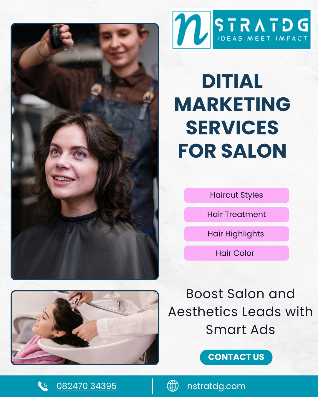 How Smart Digital Ads Transformed a Salon Business In today’s competitive beauty industry, great services alone aren’t enough — you need visibility. When customers search “best salon near me” or “skin clinic in Hyderabad,” your business must appear instantly. That’s precisely the growth nStratdg Pvt Ltd delivered for a leading beauty salon through a targeted Google Ads and Meta Ads campaign. From Small Budget to Big Returns With a modest daily spend of just ₹1,000 (roughly ₹80,000/month plus GST), the salon generated over ₹2,50,000 in monthly revenue — a compelling 200% ROI. The results speak for themselves: cost per click held below ₹25, and 80–90 genuine leads were delivered every single month, translating into consistent walk-ins and repeat bookings. Why Digital Marketing Works for Salons Relying solely on referrals and foot traffic limits your growth ceiling. Digital advertising connects you directly with high-intent customers actively searching for haircare, skincare, or aesthetic treatments. Every click is trackable, every rupee accountable — giving you full transparency over your returns. Beyond conversions, a consistent online presence builds brand trust and keeps you ahead in a crowded market. Strategy That Converts Targeted keywords like “bridal makeup packages” and “IPL laser treatment” attracted clients ready to book — not just browse. Compelling visuals and sharp ad copy turned impressions into appointments. Ready to Grow? Whether you run a hair studio or an advanced aesthetic clinic, the right digital strategy can unlock scalable, profitable growth. Partner with nStratdg Pvt Ltd and start attracting 80–90 new customers monthly — without overspending.