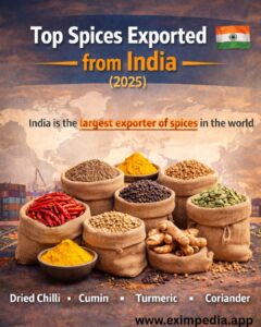Explore the top spices export from India in 2025, including dried chilli, cumin, turmeric, and coriander. Learn why India is the largest exporter of spices in the world, key importing countries like the USA and Vietnam, and insights into global spices exports by country.