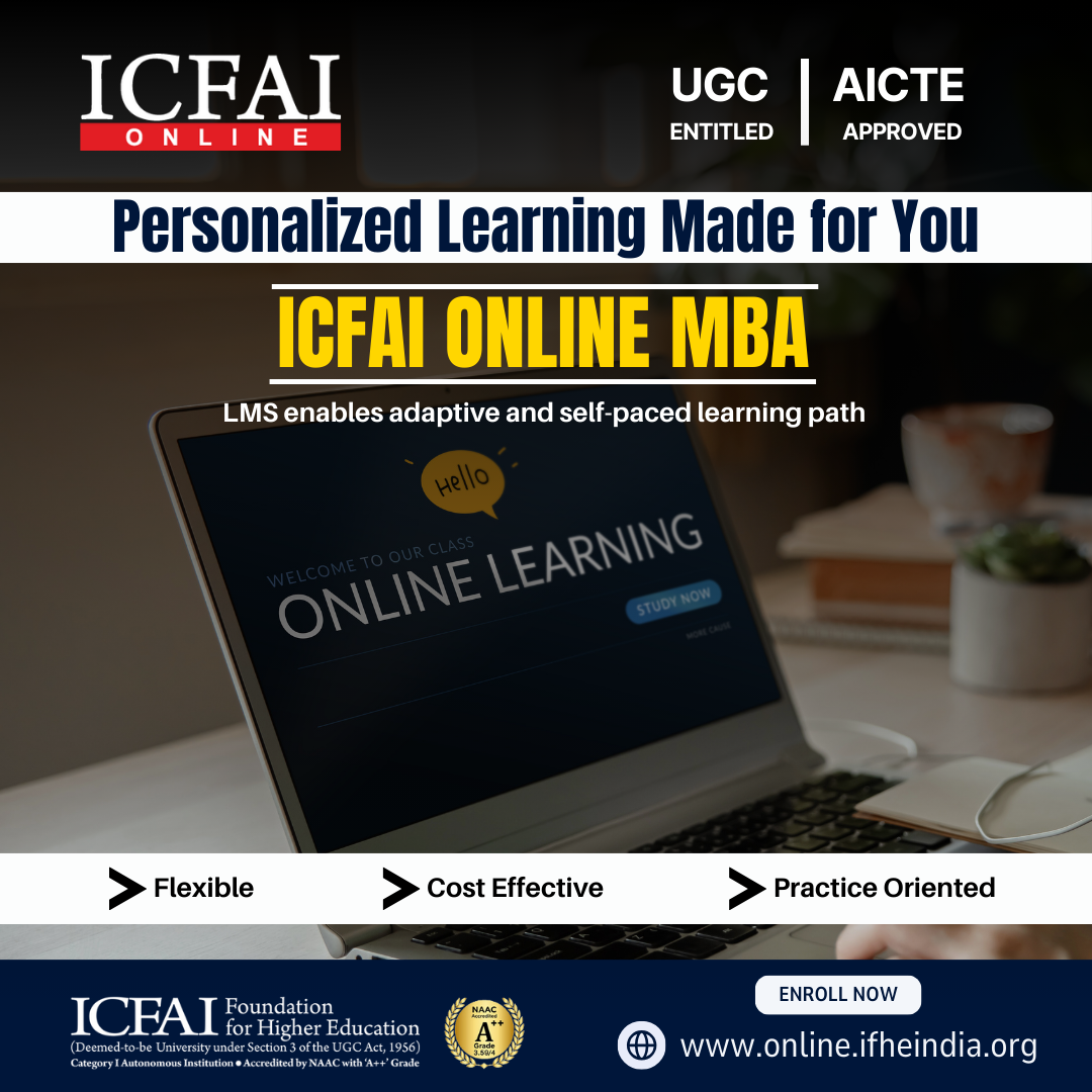 Unlock your leadership potential with the ICFAI Online MBA Program, tailored for busy professionals looking to advance their careers without disrupting their schedules. Develop critical business insights, sharpen strategic thinking, and cultivate a global perspective—all while maintaining a balance between work, life, and education. Our comprehensive curriculum is delivered through cutting-edge online platforms, enabling you to learn from renowned faculty and connect with a network of ambitious professionals. Whether you aspire to executive roles or entrepreneurship, our Online MBA equips you with the skills and knowledge needed to excel in today’s dynamic business environment.
