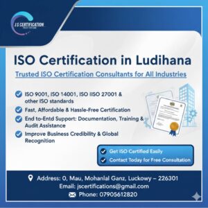 ISO Certification in Ludhiana by JS Certification helps businesses achieve ISO 9001, ISO 14001, ISO 45001, ISO 22000 & ISO 27001 certification. We offer professional consultancy, quick documentation, audit support, and reliable ISO registration services for all industries.