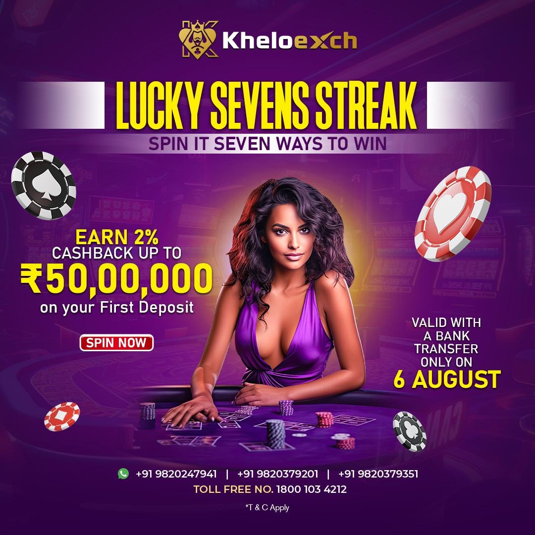 The Lucky Sevens Streak is back with unmatched excitement on Kheloexch this 6th August. This one-day-only celebration is crafted for players who love thrilling challenges and bigger rewards. By joining this event, you unlock the chance to earn 2% cashback on your first play with a bank transfer. What makes this special is the seven unique ways to spin and win, offering more opportunities than ever before. With a vibrant setup, immersive gameplay, and rewarding offers, the Lucky Sevens Streak highlights why Kheloexch has become a top choice for gaming enthusiasts.