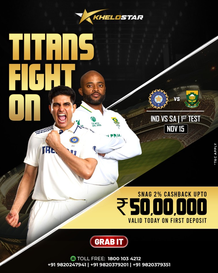Step into the action with Khelostar as India and South Africa clash in the 1st Test. Experience intense moments, bold performances, and unmatched excitement crafted for true cricket followers. Explore the Playbook page for deeper insights and be part of the thrill at Khelostar .