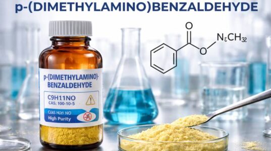 Sarna Chemicals is a leading Indian manufacturer of p-(Dimethylamino)benzaldehyde, offering high-quality solutions for pharmaceutical, dye, and specialty chemical industries. This important compound is widely used as a key intermediate in organic synthesis, known for its reliable reactivity and versatility in various chemical processes. Manufactured using advanced production techniques and strict quality control systems, it ensures high purity, consistent composition, and stable performance across applications. Its role in complex formulations supports efficient production and innovation in modern chemical manufacturing. The compound is suitable for both laboratory research and large-scale industrial use, where precision and consistency are critical. With a strong focus on regulatory compliance and quality assurance, the manufacturing process ensures dependable batch-to-batch uniformity. By delivering consistent quality and reliable supply, this solution helps industries achieve improved productivity, enhanced product performance, and long-term operational efficiency in diverse chemical and pharmaceutical applications.