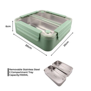 Discover a practical leak proof lunch box designed for mess-free meals on the go. This stainless steel bento features two compartments that keep food fresh and neatly separated, along with a removable inner tray for easy cleaning. Built with a durable stainless steel interior and BPA-free exterior, it ensures safe food storage for kids and adults. The airtight sealing helps prevent spills while maintaining freshness.