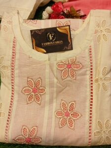 Bring home a blend of elegance and freshness with our Off White Pink Cambric Cotton Suit Set, perfect for everyday grace and festive charm. Crafted from premium cambric cotton, this outfit offers a lightweight, breathable feel with a beautifully soft finish, ideal for the Indian climate.The soothing off-white base is adorned with delicate pink prints or accents, giving the set a soft, feminine appeal. Whether you’re heading to work, a casual get-together, or a daytime function, this suit set delivers comfort without compromising on style.