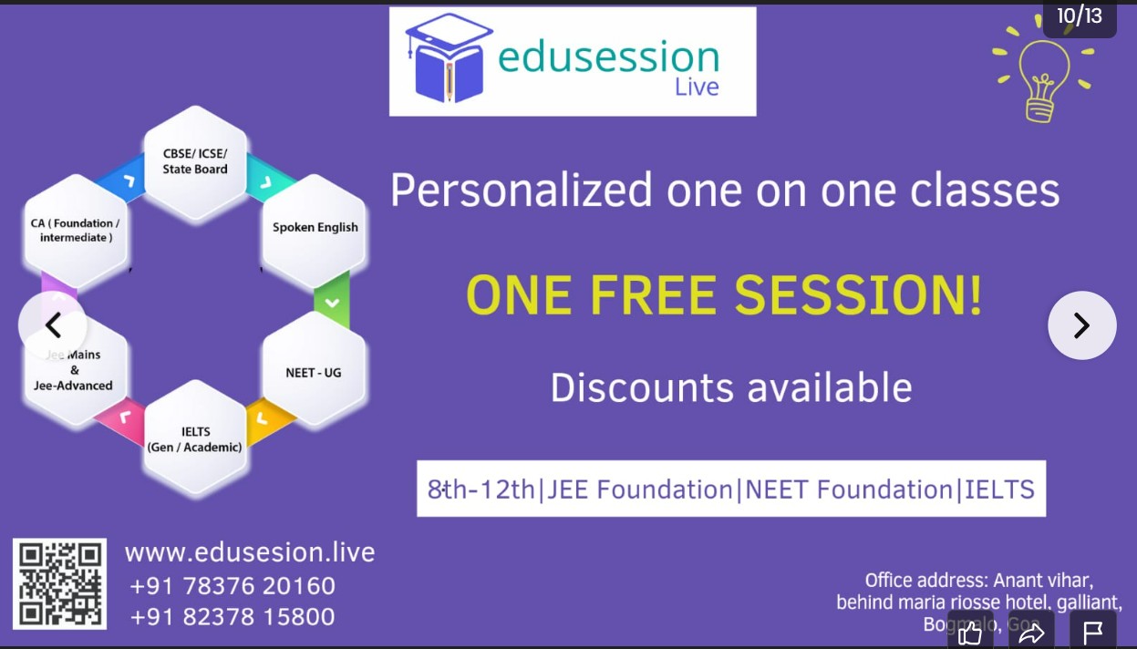 Experience tailor-made learning with Personalized Online Classes in Goa at Edusession Live. Our one-on-one sessions focus on student needs, helping learners master difficult subjects with ease. With flexible schedules, interactive teaching, and real-time doubt solving, students enjoy a learning journey that builds confidence, ensures clarity, and delivers consistent academic results across subjects.