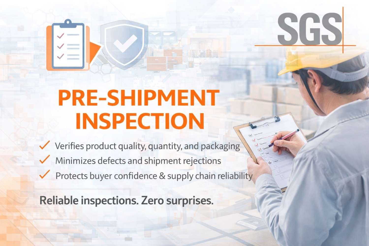Quality Assurance at the Source -/1 by sgsindia Published: January 27, 2026 (2 months ago) Category Business Link https://www.sgs.com/en/services/pre-shipment-inspections Quality control is most effective before goods leave the factory. Pre-shipment inspection provides an independent assessment of product quality and quantity. It helps identify defects early and supports corrective action before shipment approval.