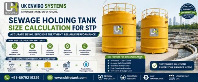 Undersized collection tanks cause STP overflows and environmental fines. UK Enviro Systems, trusted STP Collection Tank Manufacturers, use hydraulic retention time (HRT) of 6–12 hours plus peak factor. Our FRP tanks are spark-tested, UV-stabilized, and easy to clean. From 5,000 to 1,00,000 liters – built to your calculated dimensions.