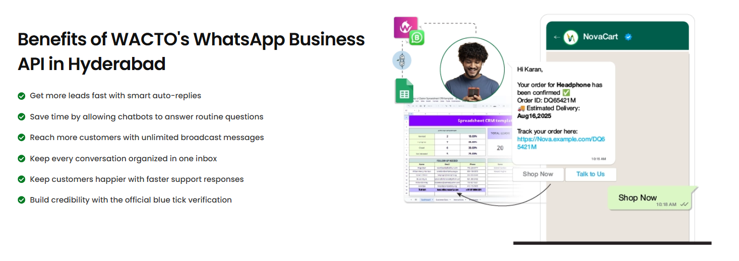 Seeking to streamline customer communications? The right selection of WhatsApp API Provider Hyderabad transforms the way your business connects with clients. This WhatsApp Business API lets you automate conversations and extend instant support, enabling personalized experiences on the platform customers prefer. A reliable WhatsApp API service provider in Hyderabad ensures security, scalability, and seamless integration to suit your business needs. WACTO empowers Hyderabad businesses to realize the full power of the WhatsApp Business API for better engagement and increased conversions. Automated replies, bulk notifications, and interactive product catalogs are just but a few of the tools that our platform provides to hasten and efficiently communicate with customers. Partnering with a trusted WhatsApp Business API provider, such as WACTO, helps reduce response time, builds customer satisfaction, and optimizes marketing campaigns with ease. Whether a growing startup or an established enterprise, the right WhatsApp API partner in Hyderabad will make communication smarter and more efficient. Learn how WhatsApp Business API Provider Hyderabad can elevate customer interactions to support the growth of your business. Join WACTO now to discover seamless WhatsApp automation that takes customer engagement to a whole new level.