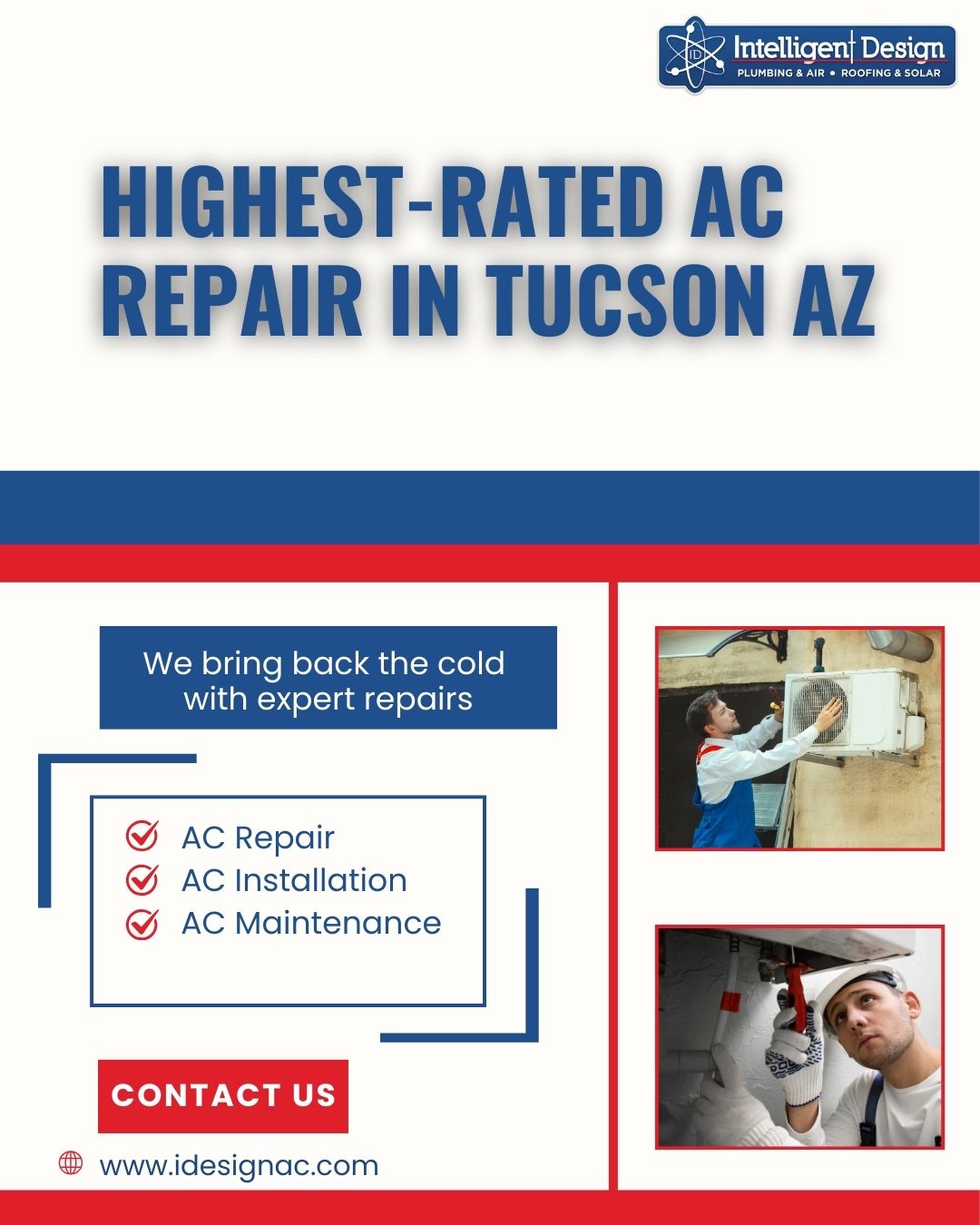 Facing cooling issues in Tucson’s heat? Our expert tucson az heating and cooling services provide fast, reliable AC repair when you need it most. Intelligent Design offers 24/7 emergency support, accurate diagnostics, and affordable solutions to restore comfort quickly. Stay cool with top-rated air conditioning repair and dependable service trusted by Tucson homeowners year-round.