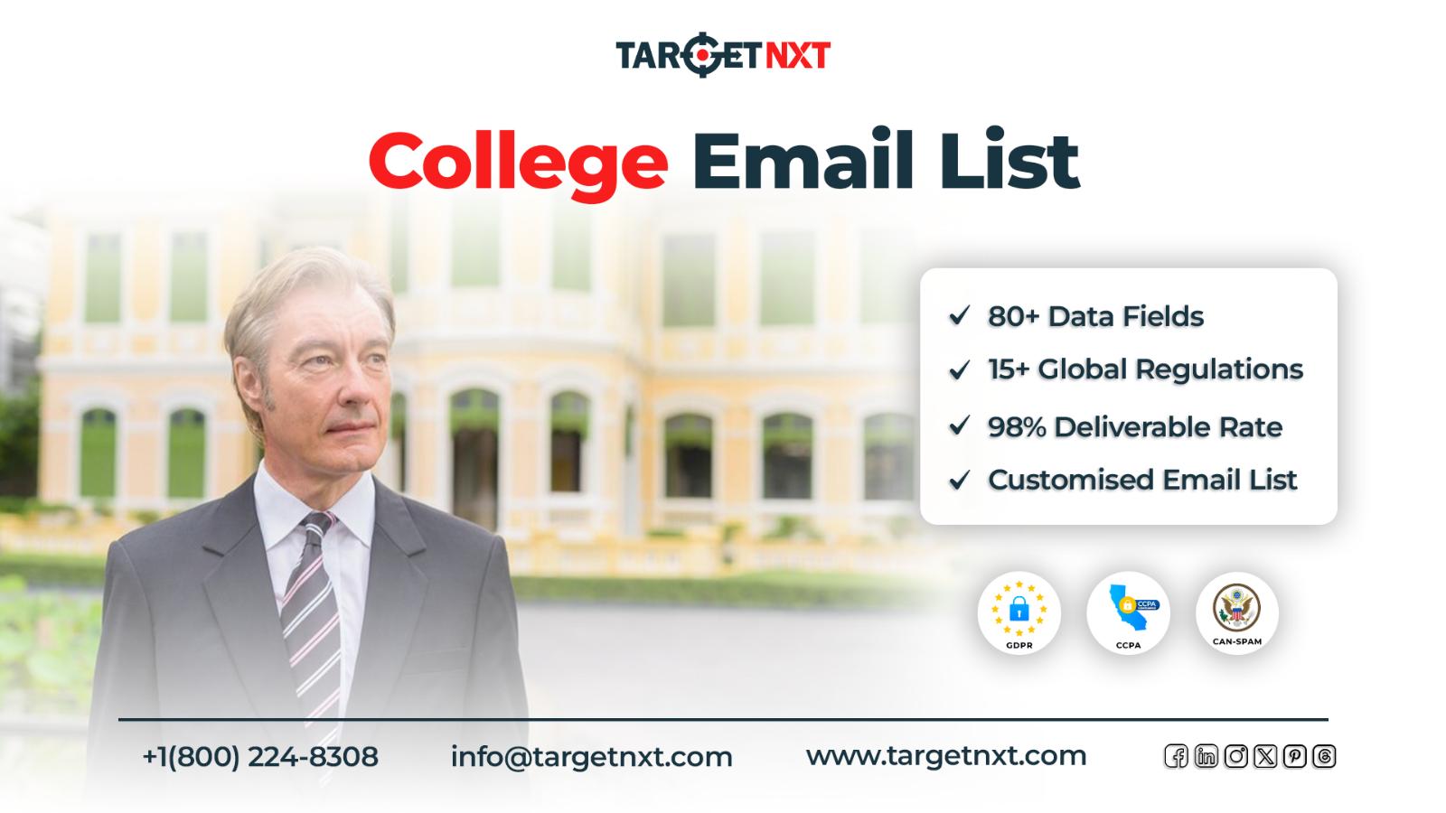 Are you a marketer offering books, software, or educational supplies? If so, then TargetNXT’s College Email List is the most ideal resource for your business to advertise and upsell your offerings to the “right audience segment”. Establishing and keeping strong commercial partnerships with colleges and universities is made easy with our email list.
