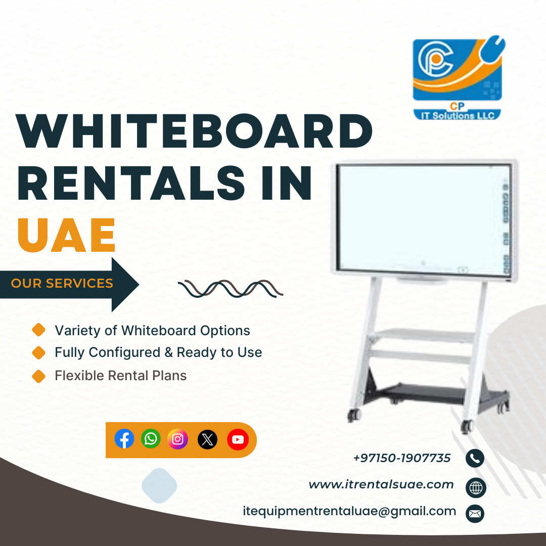 Looking for reliable Whiteboard Rental in UAE? CP IT Solutions LLC offers affordable and flexible whiteboard hire in Dubai for offices, meetings, training, and events. Choose daily, weekly, or long-term rentals with fast delivery and professional support. Call 0501907735 today. Visit Us: https://www.itrentalsuae.com/white-boards-in-dubai-uae/