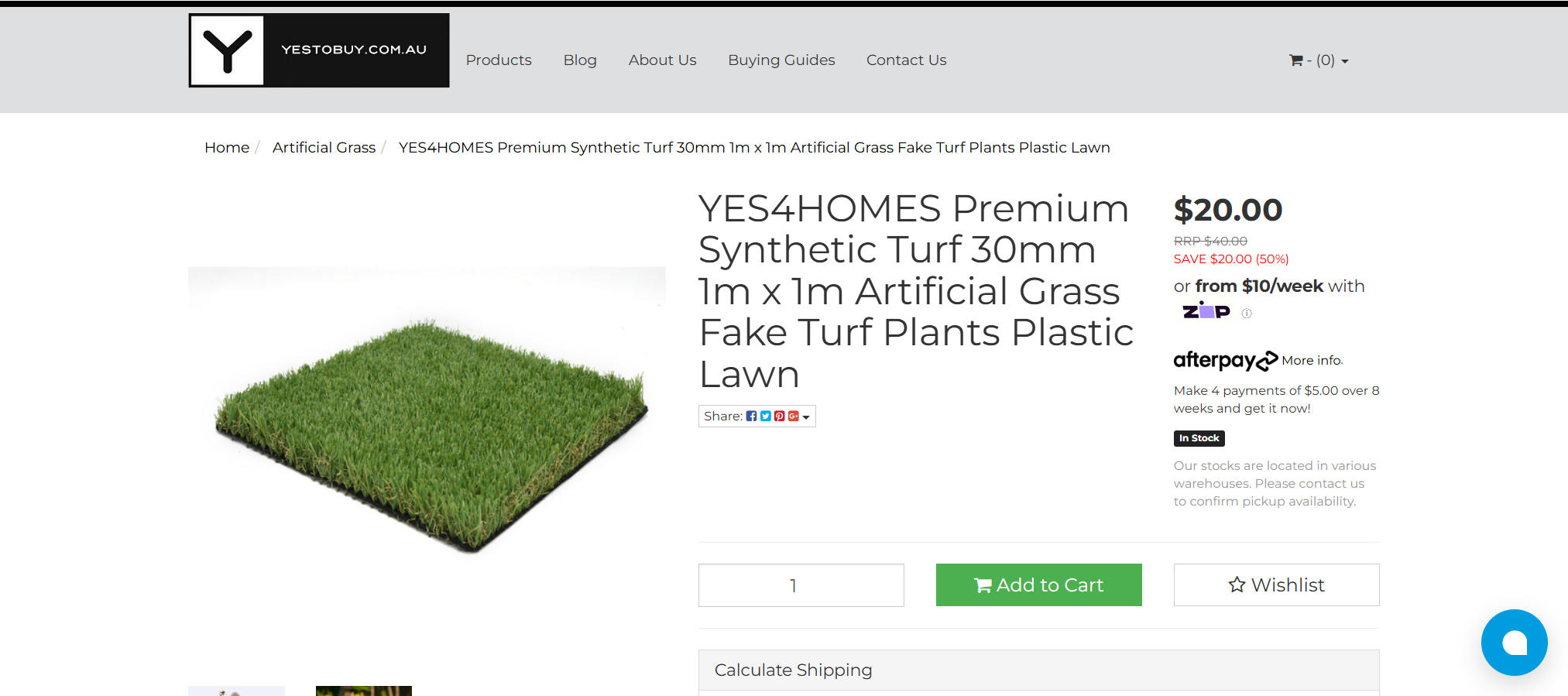 YES4HOMES Premium Synthetic Turf 30mm 1m x 1m Artificia