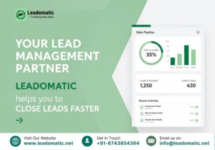 Your lead management partner – Leadomatic helps you close faster. With powerful Sales Lead Management Softwares, streamline tracking, automate follow-ups, and prioritize leads effortlessly. Improve conversions, save time, and focus on what matters most — growing your business efficiently with Leadomatic.